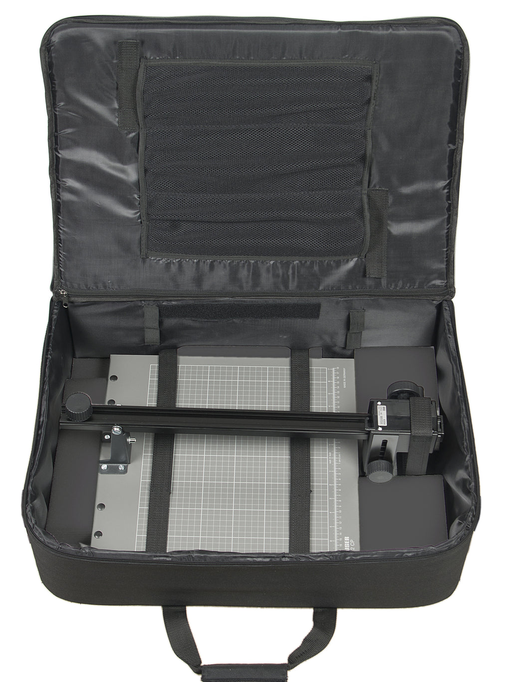 Leveres komplet i polstret transportkuffert (ca. 67 × 47 × 23 cm) med bærehåndtag og bred skulderrem – perfekt til både fast installation og mobil brug.